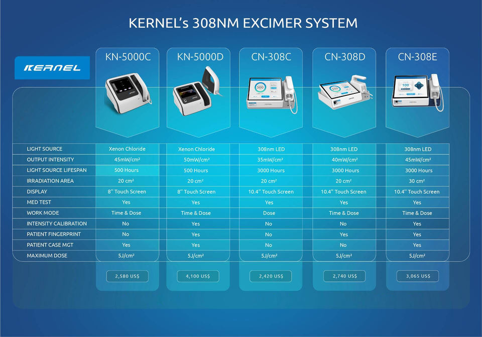 Kernel CE Cleared 308nm Excimer Laser-Láser para Vitíligo, Psoriasis, Eczema, Pitiriasis, Rosea, Dermatitis Atópica, Tinea Capitis