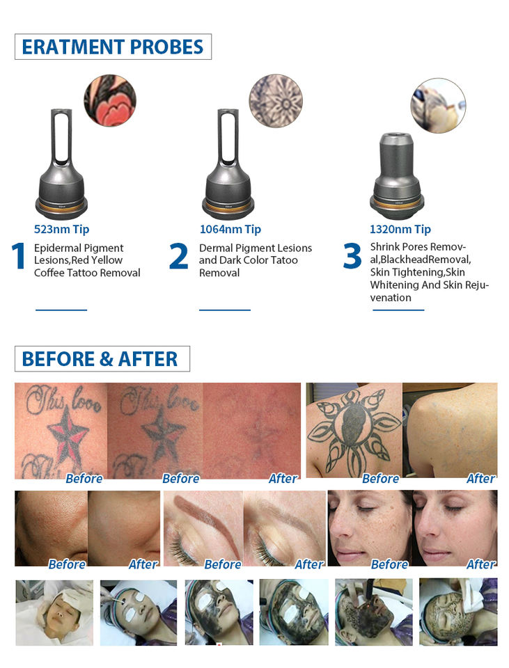 Eliminación de pigmentos, Rejuvenecimiento de la piel, Eliminación de tatuajes, Tratamiento del acné, Blanqueador, Correctores de pigmentación