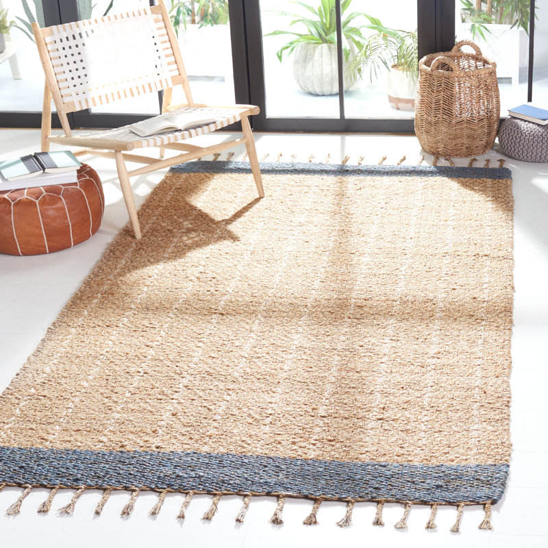 Alfombra de área moderna tejida a mano Kevin algodón de fibra natural/yute en gris/beige hecha a mano para estilo y comodidad
