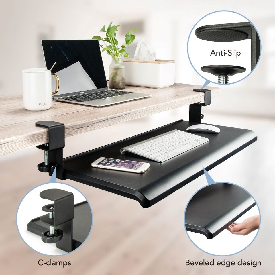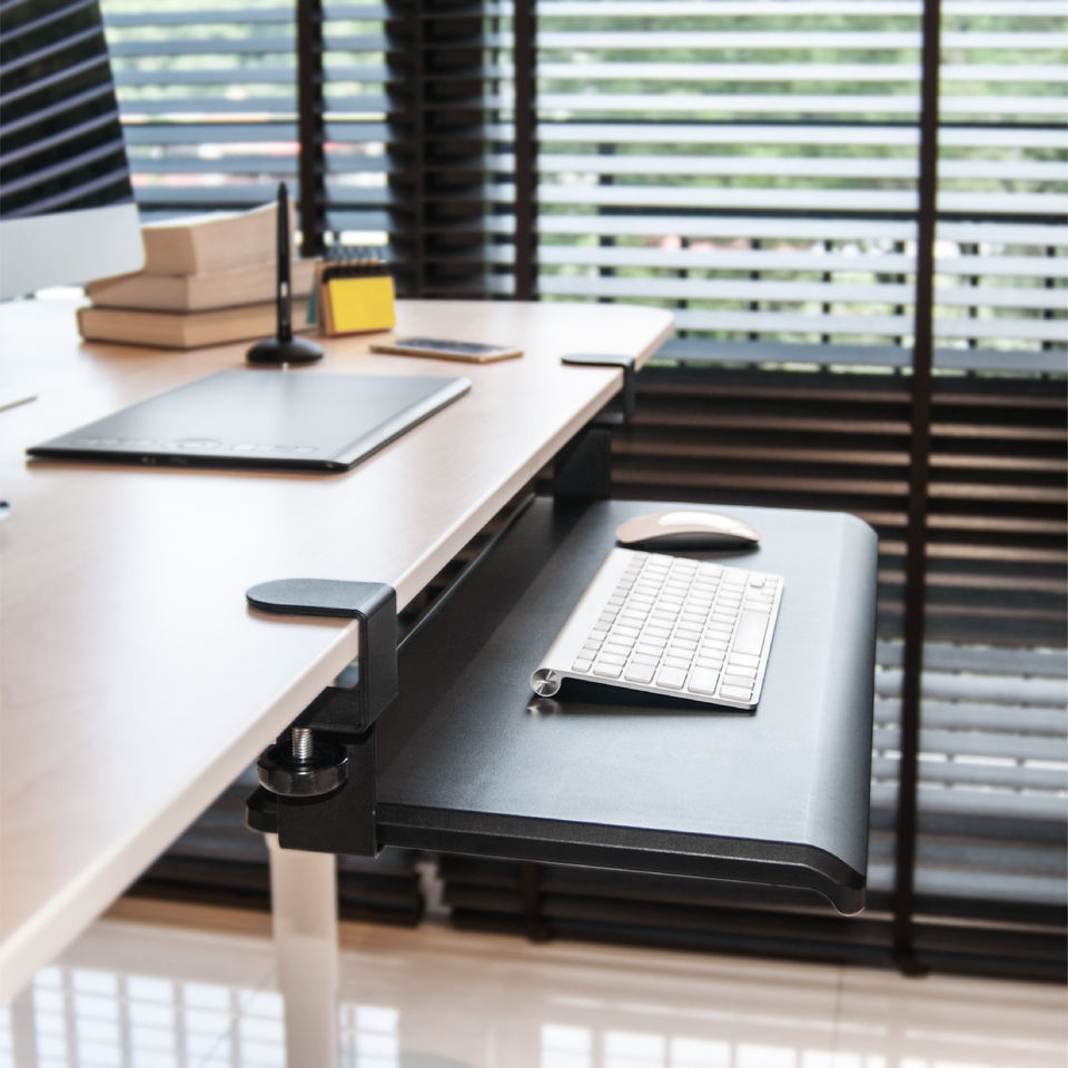 Cajón del teclado de la abrazadera del escritorio