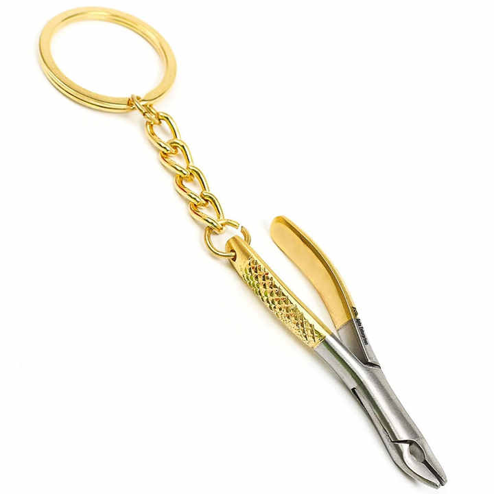 Llavero Fórceps de extracción dental Instrumentos dentales de calidad superior Fórceps de extracción en miniatura Instrumentos dentales dorados