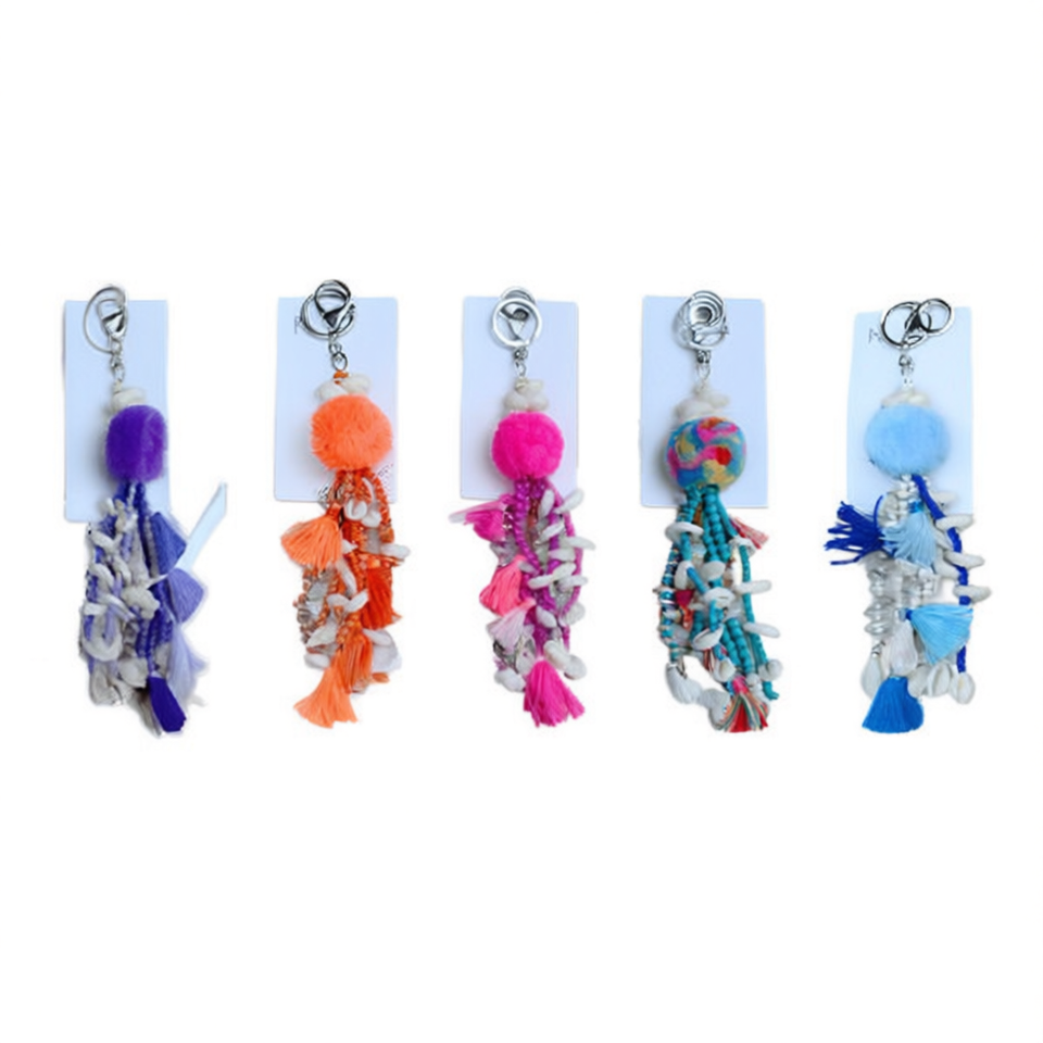 Llavero con Borla y Cadena para el Cabello, Accesorio Decorativo Colorido con Pompones para Bolsa o Llavero