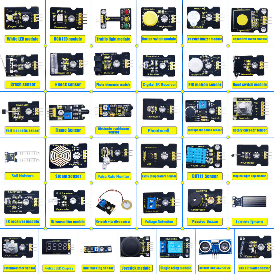 Kit de Sensores Keyestudio 37 en 1 V3.0, Kit de Componentes Electrónicos para Arduino