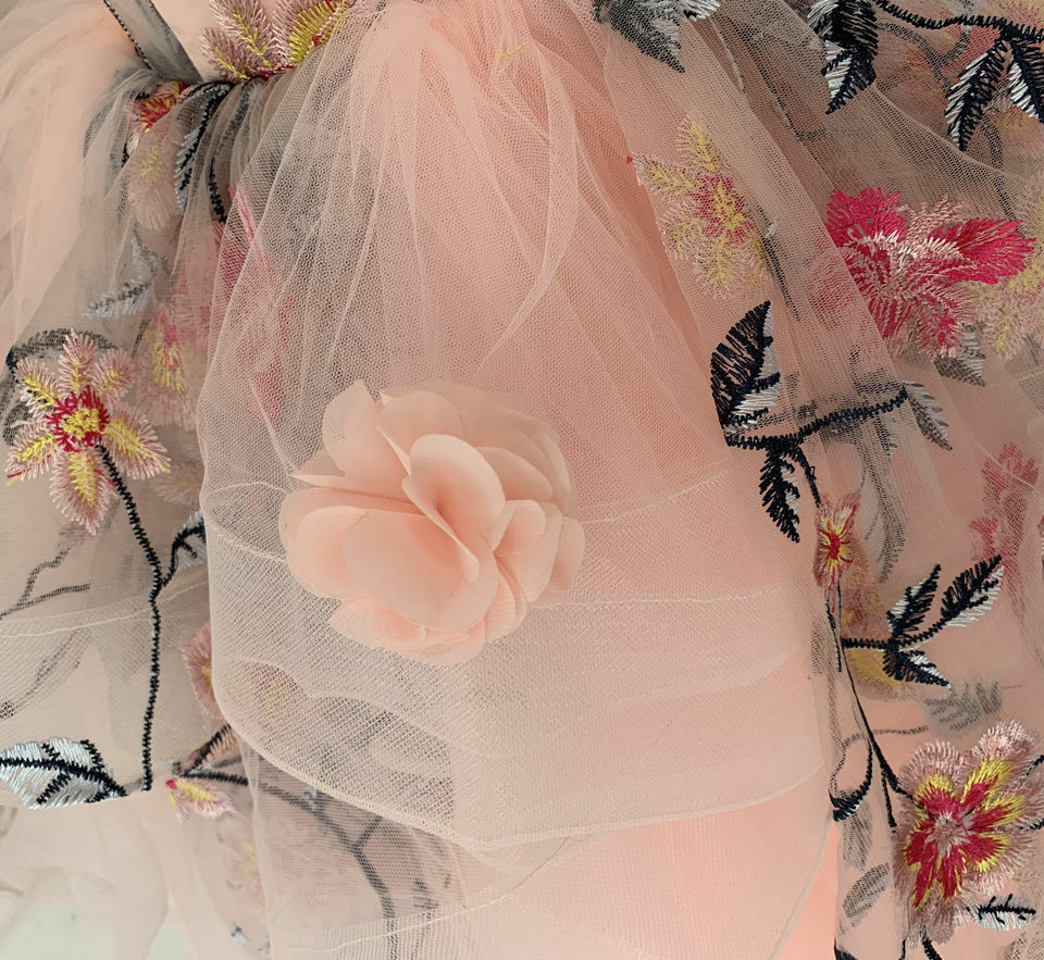 Vestido de niña de las flores de tul con bordado de encaje y espalda con abertura, vestido de fiesta para niños, vestido de cumpleaños de alta costura