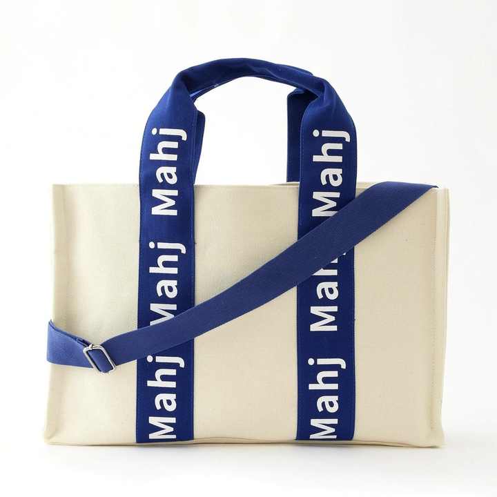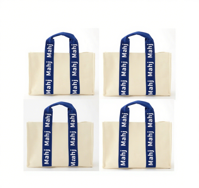 Bolsa de Almacenamiento Personalizada Keymay de Lona Crema con Asa Azul Marino y LOGO Personalizado para Soportes de Títulos, Impermeable, para Mahjong