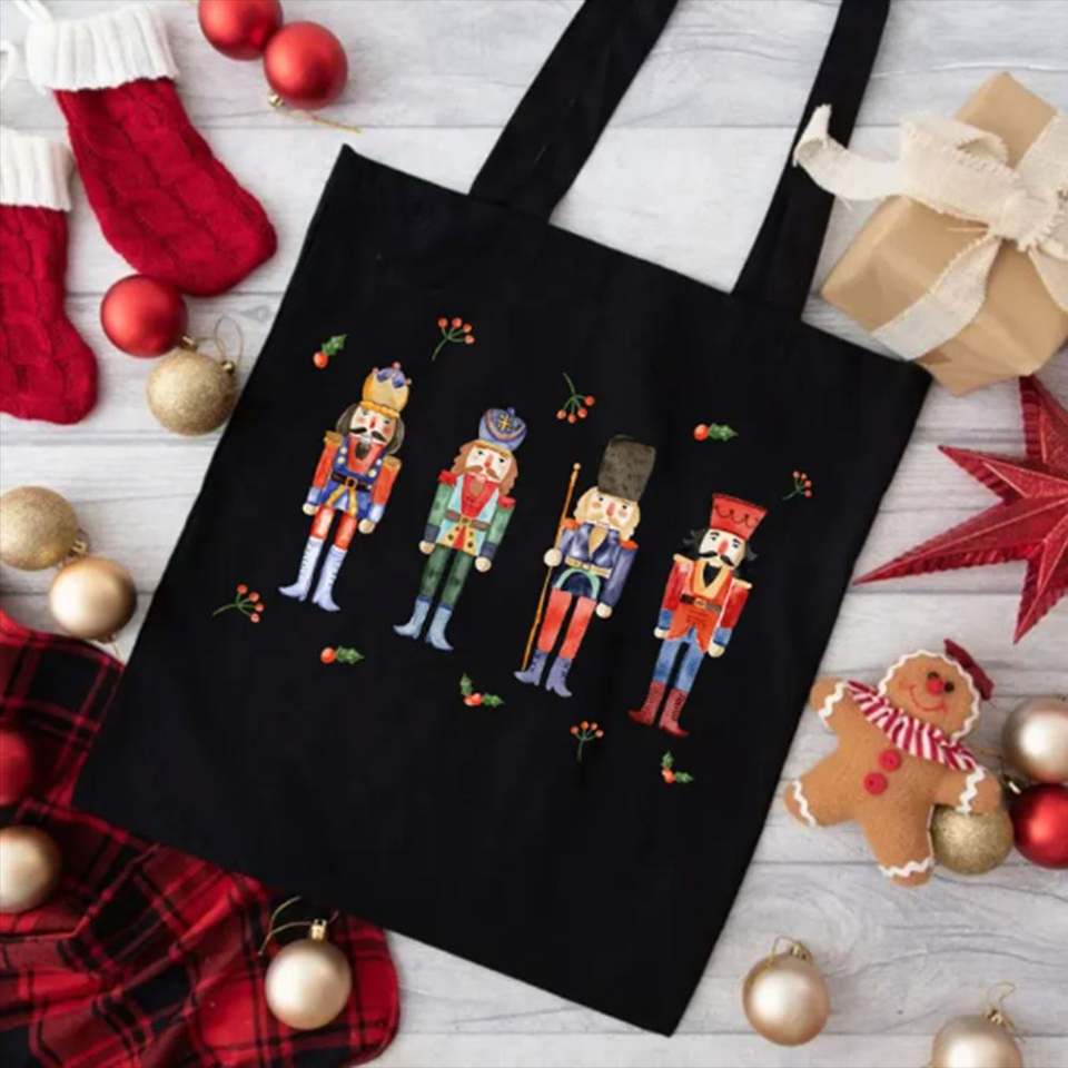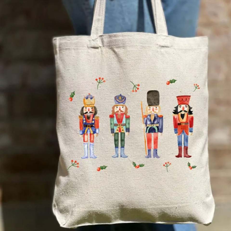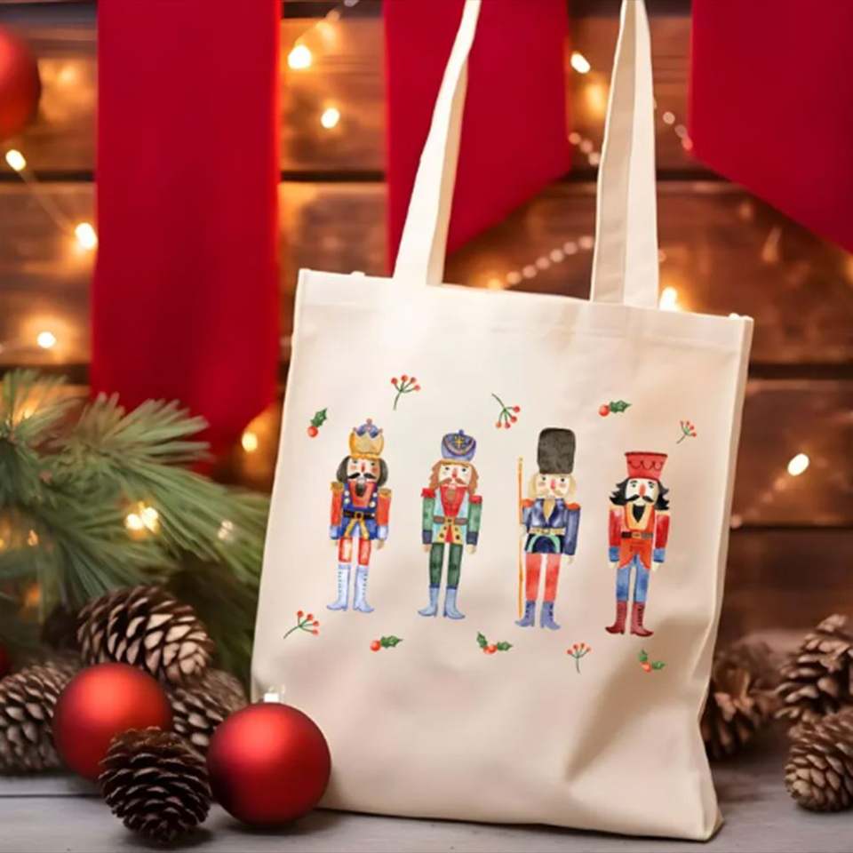 Bolsas de Compras de Lona de Algodón con Impresión Personalizada Keymay, Bolsas de Regalo Navideñas Grandes, Ecológicas, Portátiles, con Asa para el Hombro