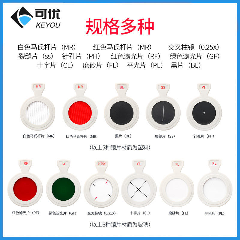 Lentes de doble propósito Keyou, anillos de plástico con lentes de vidrio para exámenes de agudeza visual