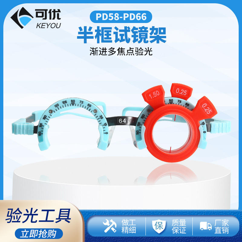 Montura de prueba de optometría Keyou, semimontura de nailon de 64 mm, equipo profesional para pruebas de visión para examen ocular