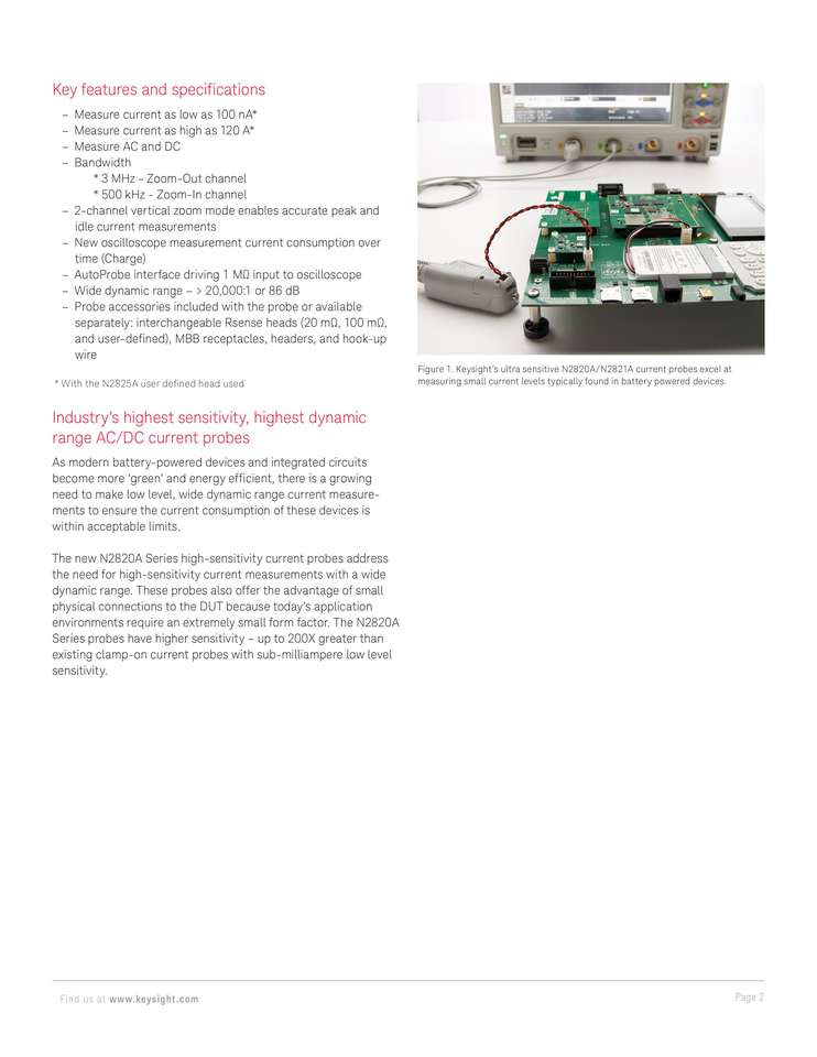 Sonda de Corriente CA/CC Keysight N2820A (2 Canales), 3 MHz, 50 uA, 86 dB, 500 kHz