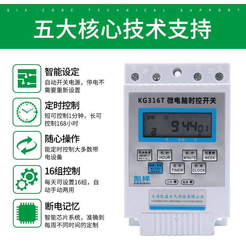 Interruptor de control de tiempo por microcomputadora Kg316t, relé de 30A, temporizador digital de 24 horas para fuente de alimentación de bomba de agua