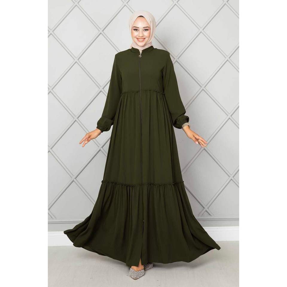 Khaki Ruffle detallado Hijab Abaya modesto vestido de noche