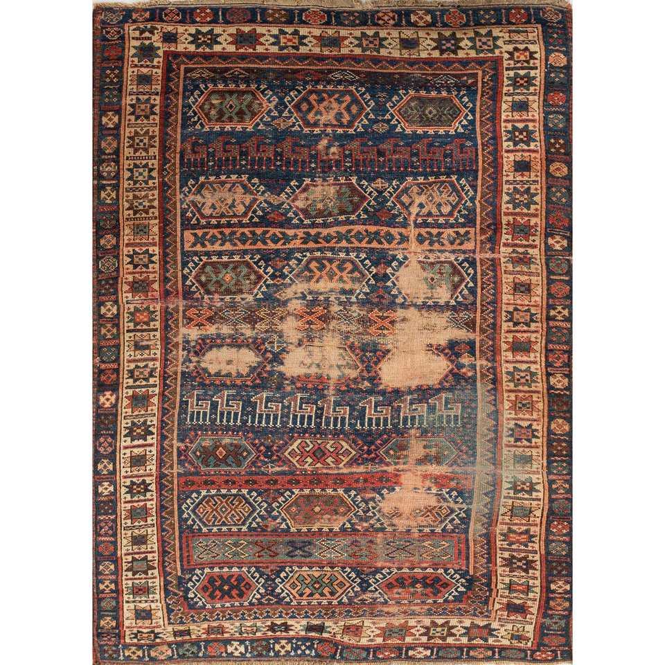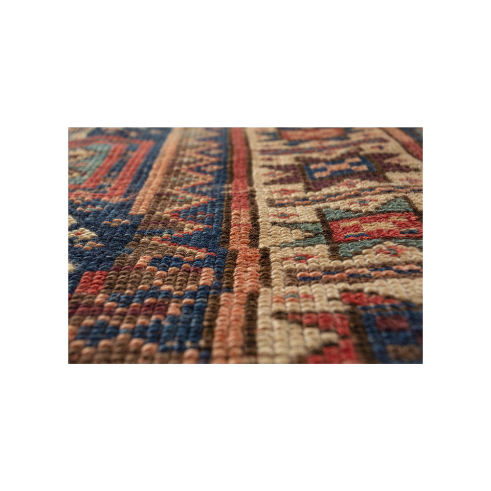 Alfombra Kiaan Azul de Lana Anudada a Mano con Patrón Geométrico, Rectangular, para Pasillo o Sala de Estar, 9x12 Pulgadas - Paem-1436