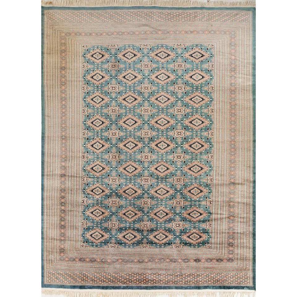 Alfombra Kiaan Azul de Lana Anudada a Mano Pae-4920, Alfombra Rectangular Abstracta Geométrica Hecha a Mano para Entrada, Pasillo, Dormitorio, 9x12 Pulgadas