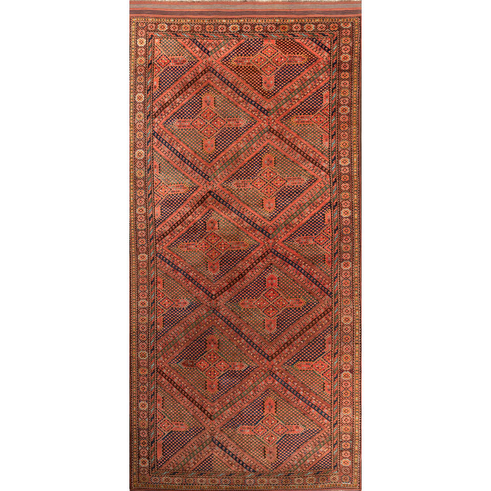 Alfombra de Lana Anudada a Mano Kiaan, Diseño Geométrico Abstracto Rojo Naranja, para Adolescentes, para Entrada, Pasillo, Modelo Paem-157, Rectangular 9x12