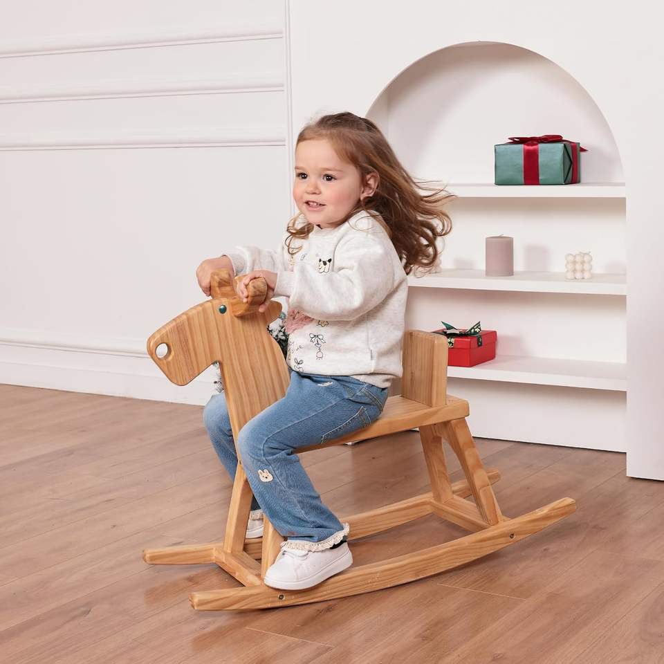 Caballito Mecedor Moderno de Madera Maciza para Niños, Juguete Montable para Bebés, Uso en Dormitorio Infantil, Respaldo de Reno, Ecológico, Regalo de Cumpleaños
