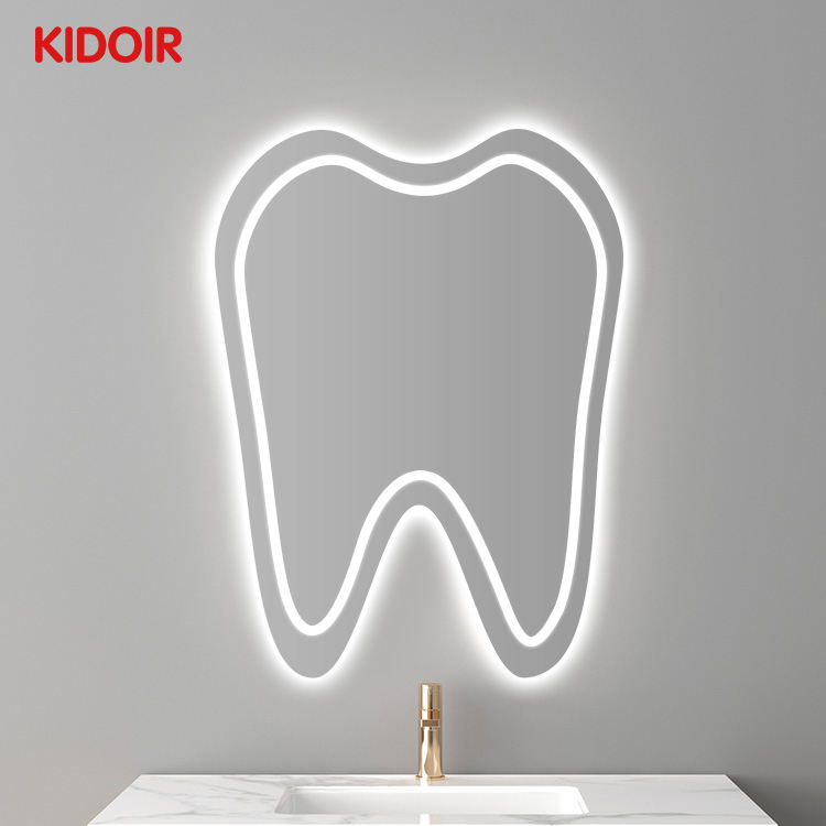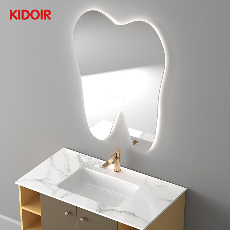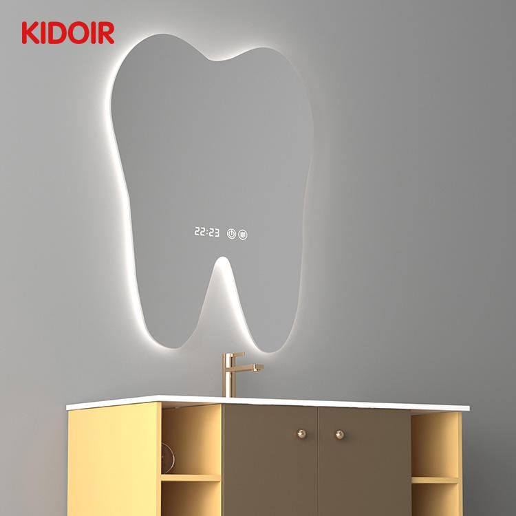 Espejo LED con Pantalla Táctil en Forma de Diente Personalizado Kidoir, Espejo de Baño LED con Control Táctil, Espejo con Reloj Despertador Digital, Pantalla LED