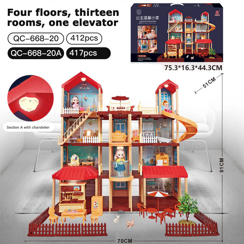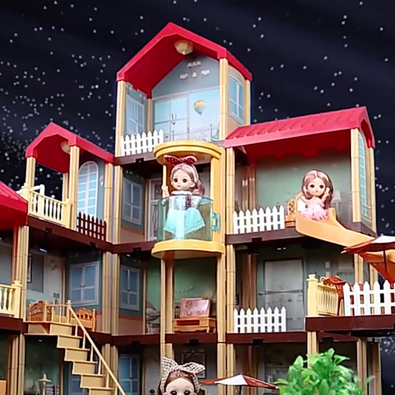 Casa de Muñecas en Miniatura de Plástico 3D para Niños, Manualidades, Rompecabezas, Casa de Muñecas para Armar con Luz LED para Niñas
