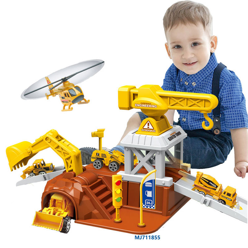 Estación de Ingeniería de Aleación para Niños, Juego de Construcción de Ciudad con Coche, Avión, Garaje y Estacionamiento con Mapa