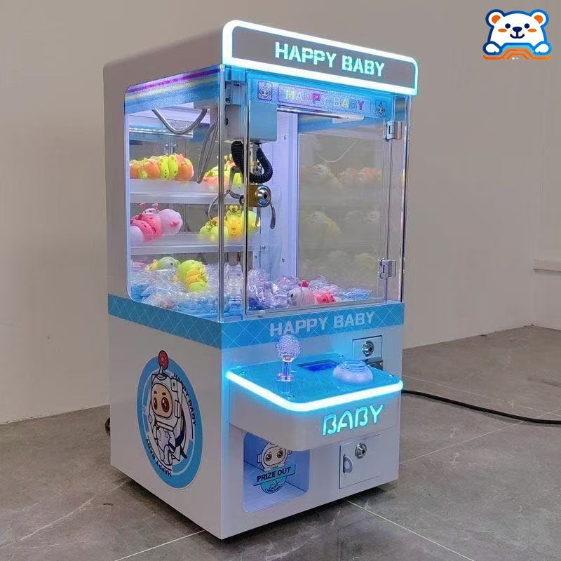 Máquina de grúa de juguete pequeña Happy Baby para niños, operada con monedas, mini máquina de garras blanca con aceptador de monedas, juguete de casa de muñecas en oferta
