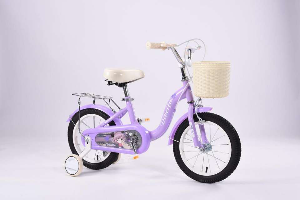 Bicicleta para niños de 16 pulgadas con cuadro de acero, ruedas de entrenamiento y cesta de mimbre para uso en exteriores de 3 a 6 años
