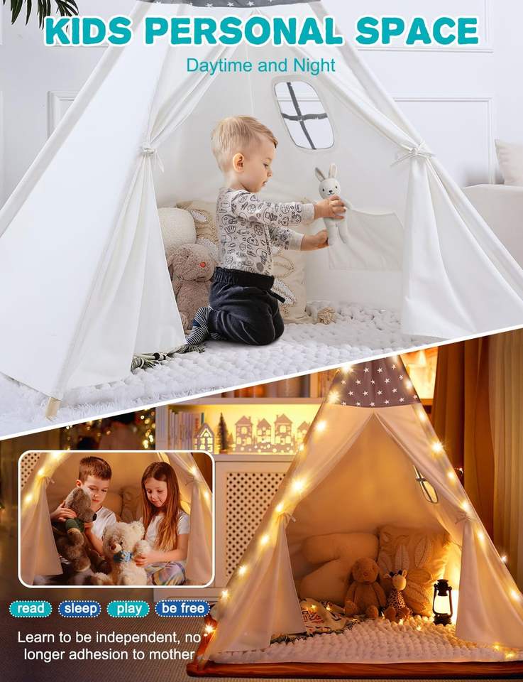 Nombre del producto:Tienda de campaña tipo tipi de lona de algodón para niños para jugar en interiores