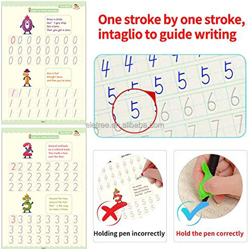 Libros de práctica de aprendizaje de escritura ranurada Magi de tapa dura personalizables para niños con bolígrafo mágico reutilizable