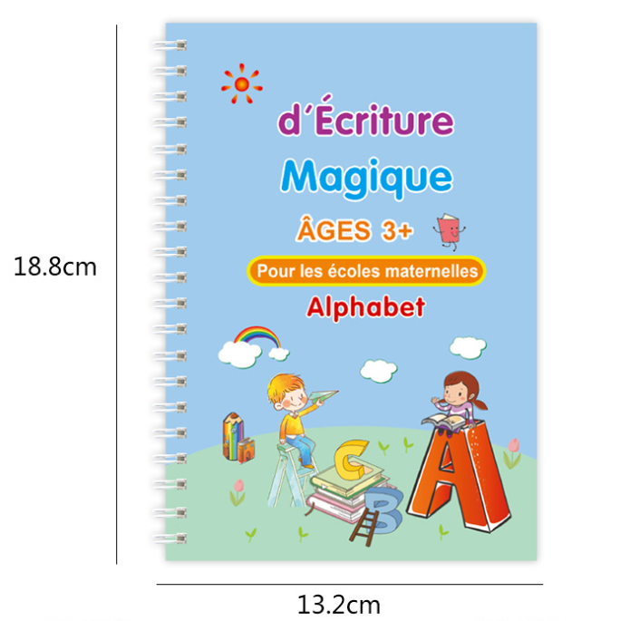 Niños educativos caligrafía francesa reutilizable dibujo escritura a mano letra del alfabeto libro de práctica mágica cuadernos mágicos con pluma