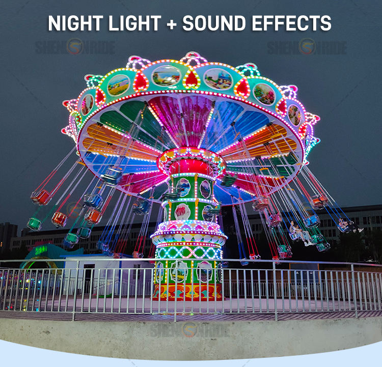 Silla voladora para niños para parque de atracciones al aire libre, construcción duradera de fibra de vidrio y acero