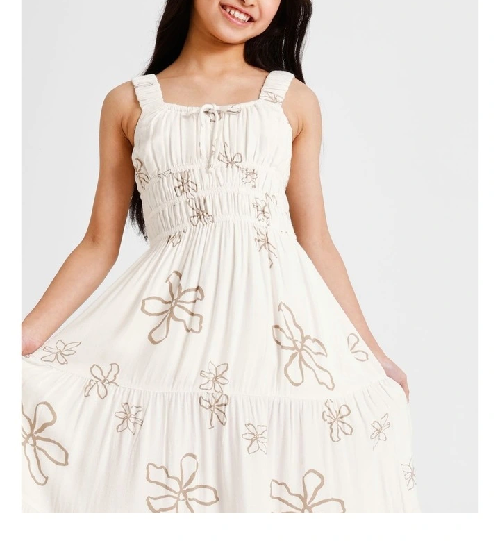 Vestido de algodón para niñas para el verano con detalles decorativos, transpirable, cómodo y con un estilo elegante para uso diario y viajes.