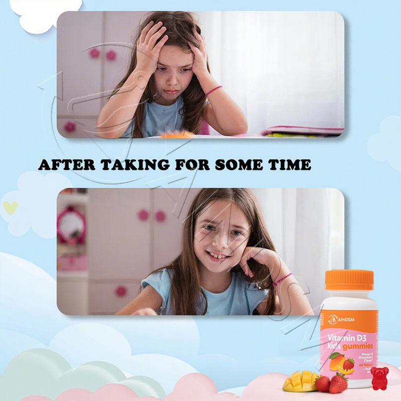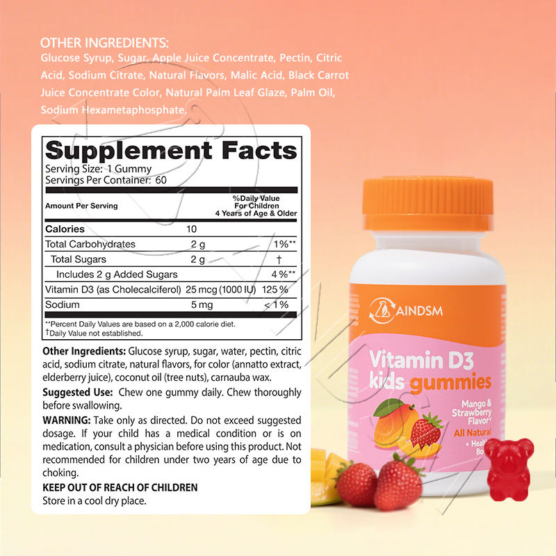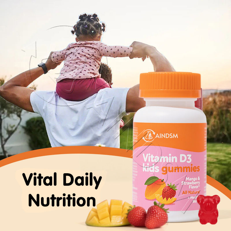 Gomitas para la Salud Inmunológica y Ósea de los Niños, Marca Privada, Vitamina D3, Delicioso Sabor a Mango y Fresa
