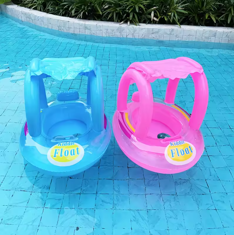 Asiento Inflable para Niños con Toldo de Protección Solar – Flotador de Piscina con Diseño de Dibujos Animados y Asiento de Seguridad para Bebés