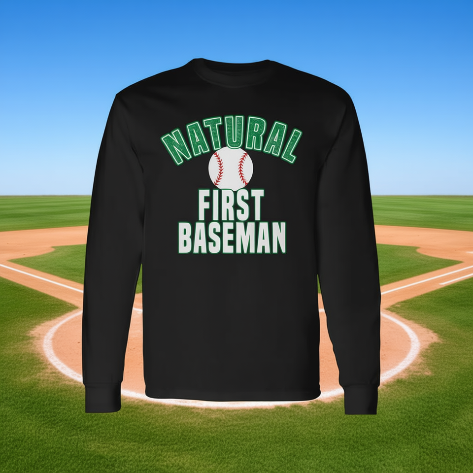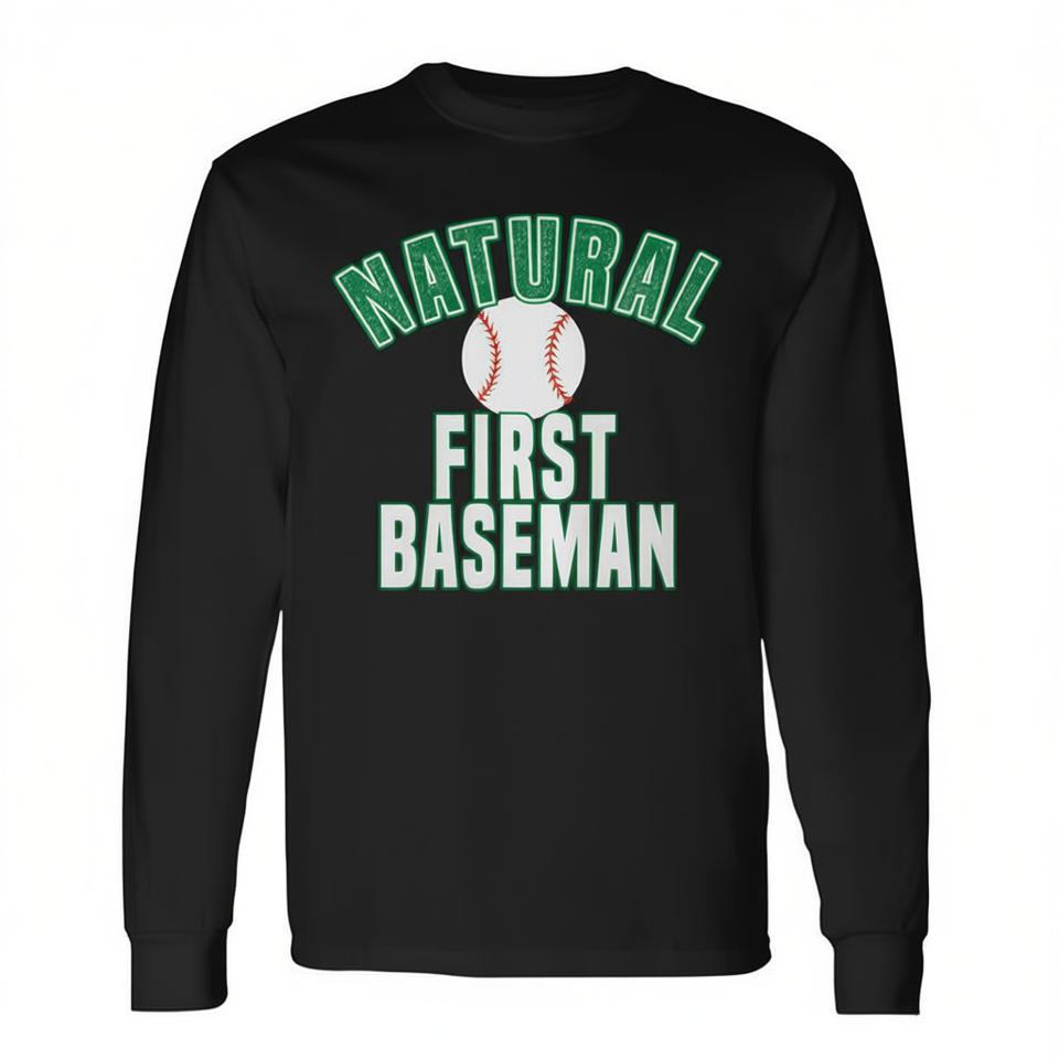 Camiseta Deportiva de Manga Larga para Niños, Diseño Natural de Primera Base de Softbol