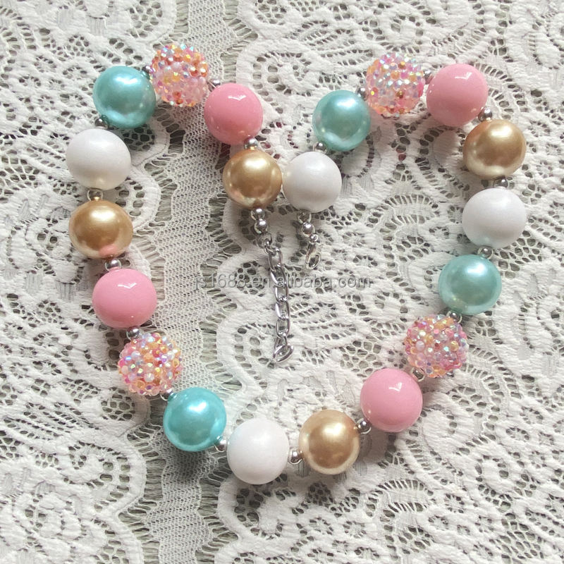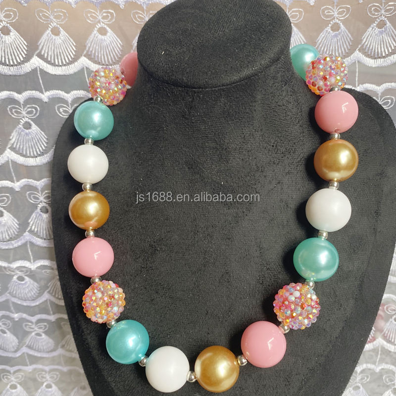 Collar grueso de diamantes de imitación de Color caramelo Pastel para niños, collar bonito con abalorios para niñas pequeñas, collar de cuentas de chicle de 20mm