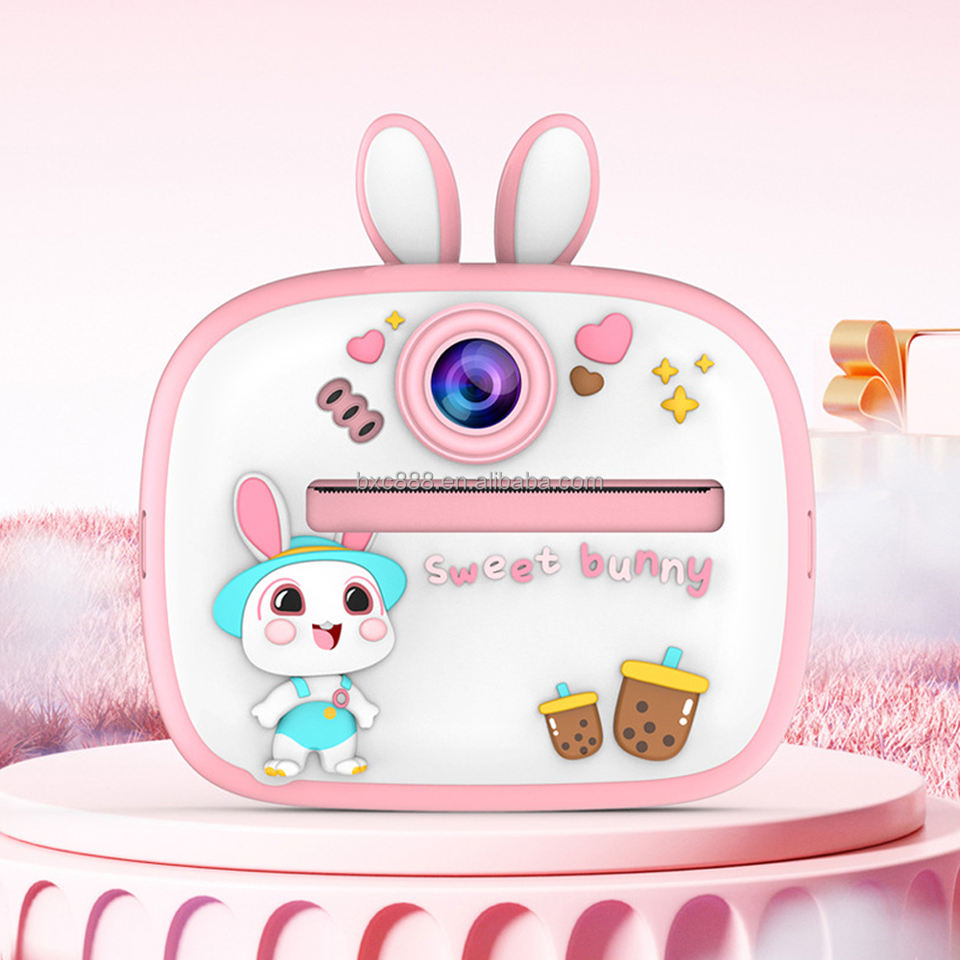 Cámara Digital Infantil con Forma de Conejo, Doble Lente, 2400W Píxeles, Impresión Térmica e Instantánea de 1300mAH, Función MP3 para Niños