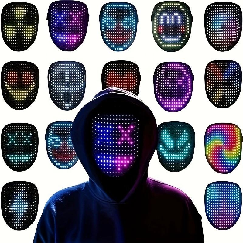 Máscara de látex de neón LED recargable para niños, luz de pantalla de Halloween, transformación facial, juguete de PVC para disfraces, fiesta de Cosplay para Pascua