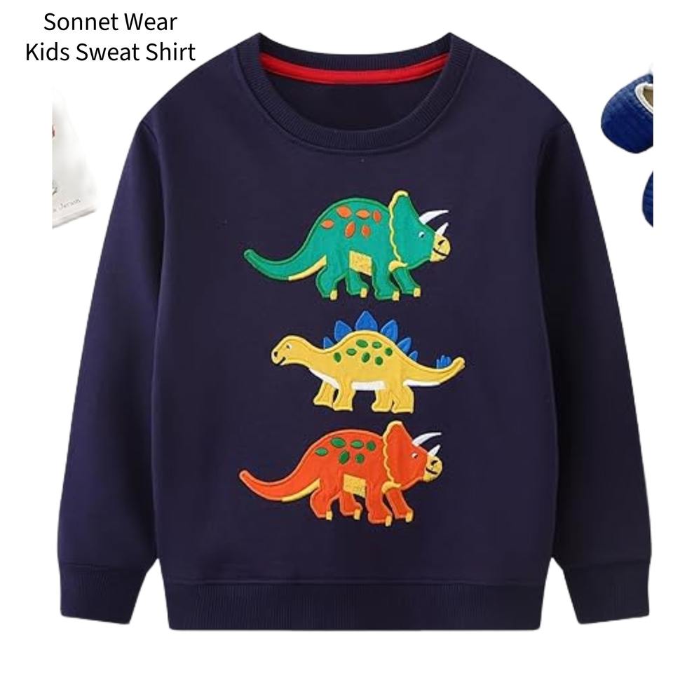 Sudadera para niños con patrón de bordado de dibujos animados, cuello redondo, manga larga, jersey de algodón