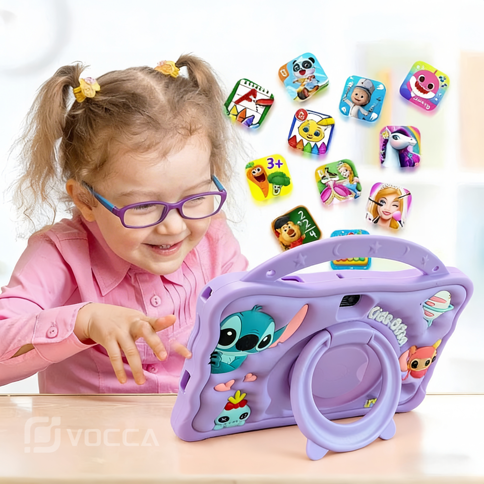 Tablet Infantil de 7 Pulgadas, Tablet Educativa para Niños con Procesador de Cuatro Núcleos, 8 GB + 128 GB, con Funda Protectora de Silicona para Niños