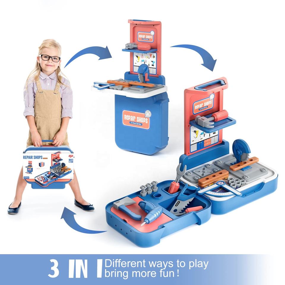 Juego de herramientas de reparación de tornillos de juguete para niños Kit de caja de herramientas de maleta de plástico para niños