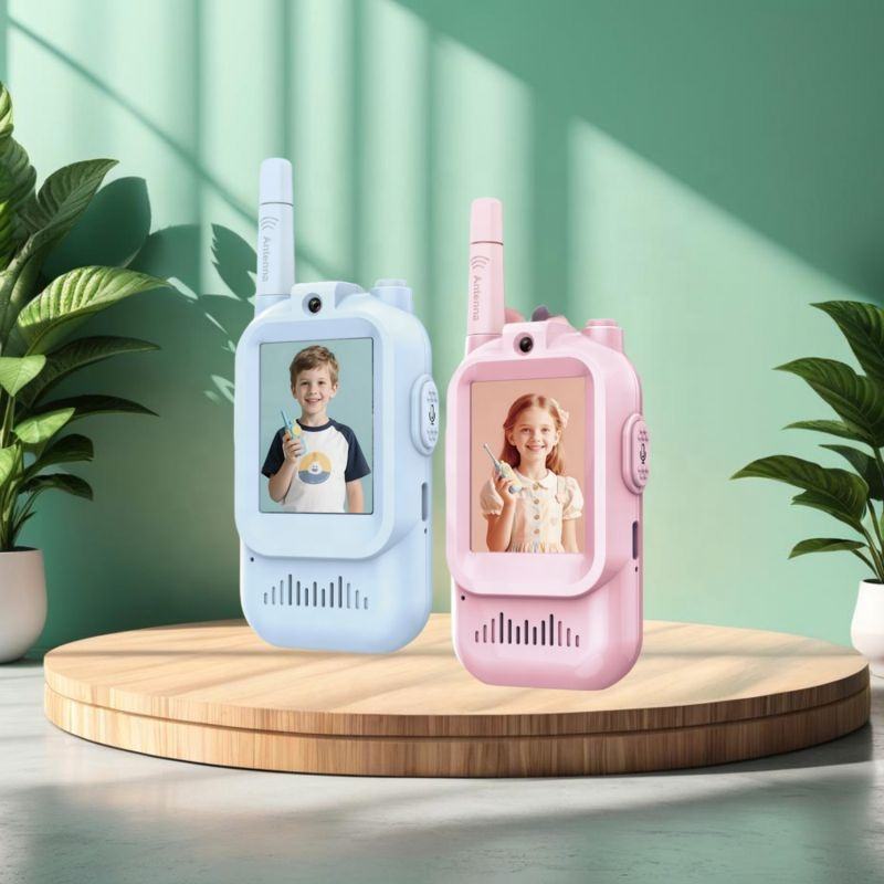 Videoportero para Niños con Pantalla de 2 Pulgadas, Videollamada Bidireccional en Tiempo Real, Alcance de 500 m, Clasificación IP56, Batería de 500-1000 mAh, Frecuencia UHF, Voz