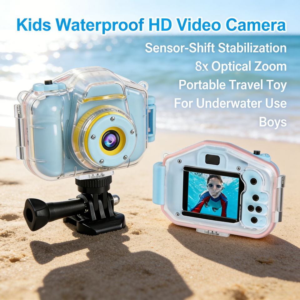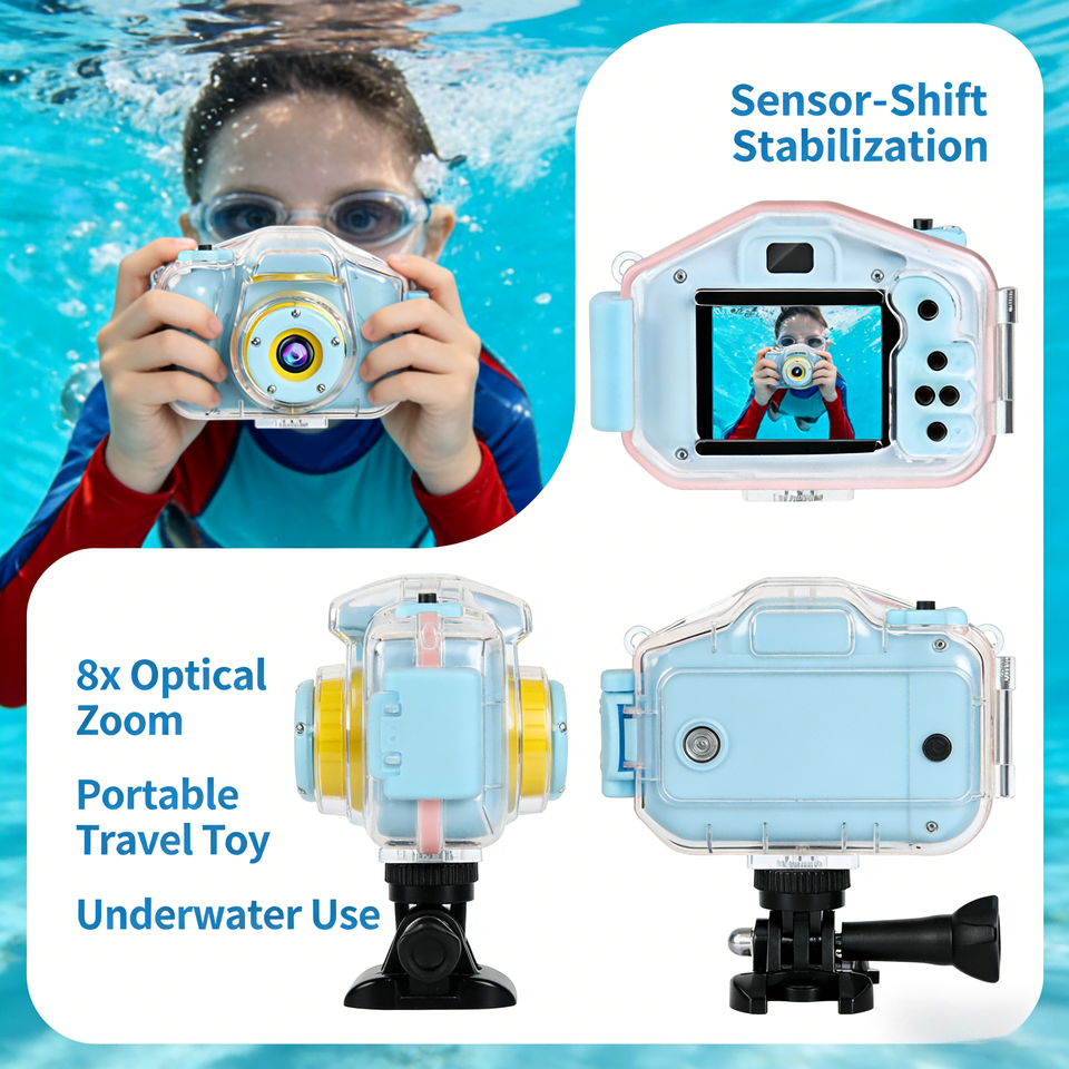 Cámara Sumergible para Niños, Sensor HD, Zoom Óptico, Portátil, Juguete de Viaje, Regalo de Cumpleaños para Niños y Niñas