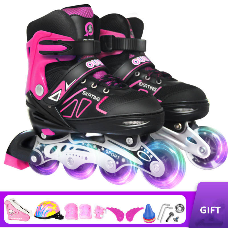 Patines de ruedas para niños y adultos con 8 ruedas iluminadas Tamaños ajustables Patines en línea para uso en interiores y exteriores