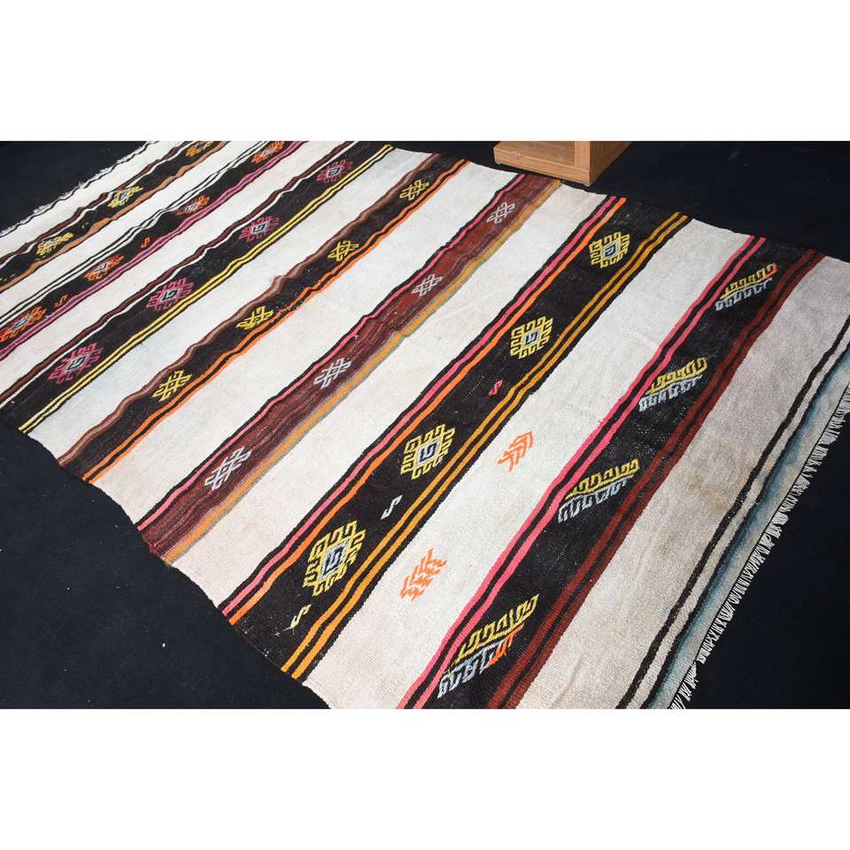 Kilim alfombra turca 5,6X10,2 pies negro hecho a mano tejido plano Jacquard Kilim felpa pila altura lana látex Patchwork para pasillo
