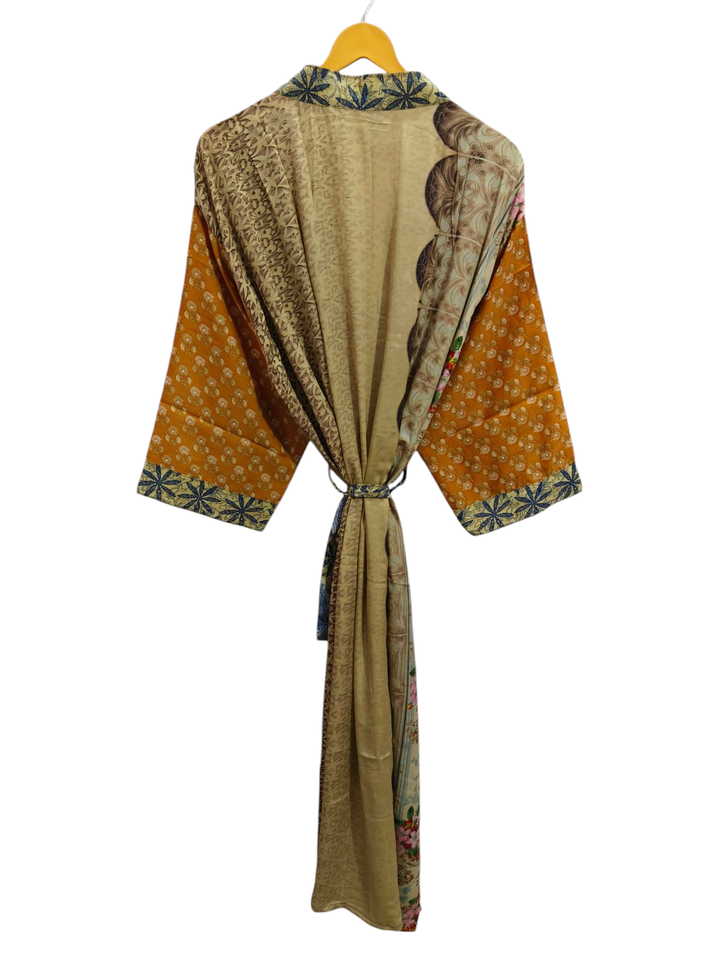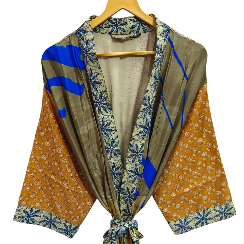 Kimono para mujer, bata de verano, Bikini, ropa de noche, bata larga, Kimono Sari de seda reciclado Vintage indio hecho a mano,