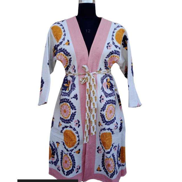 Nombre del producto:Chaqueta de kimono acolchada con bloque de mano de algodón para mujer