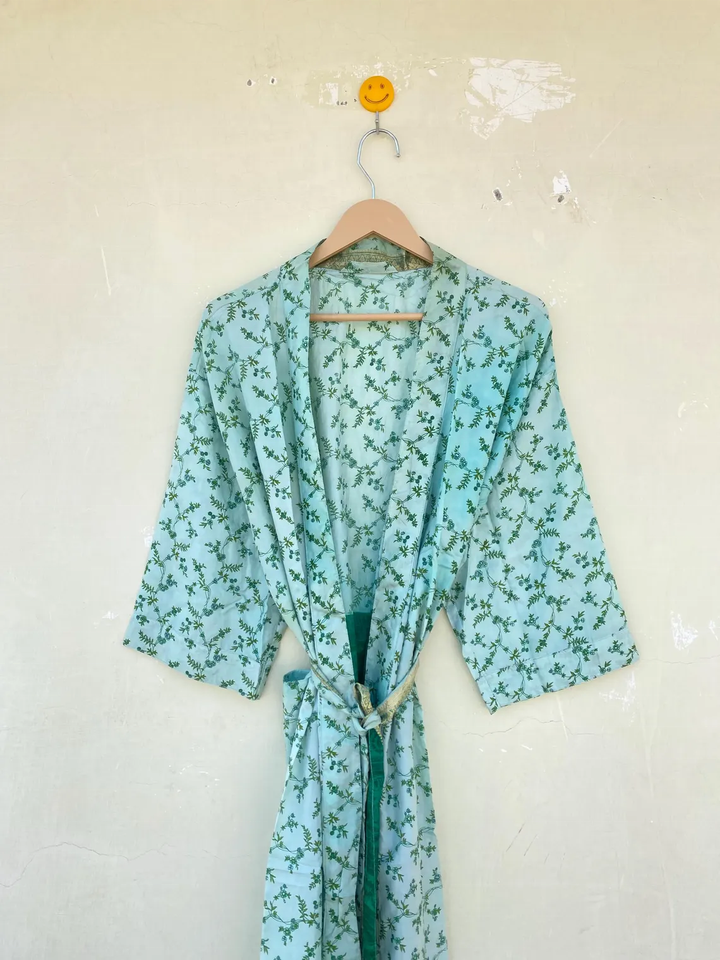 Kimono de algodón Bata estampada en bloque