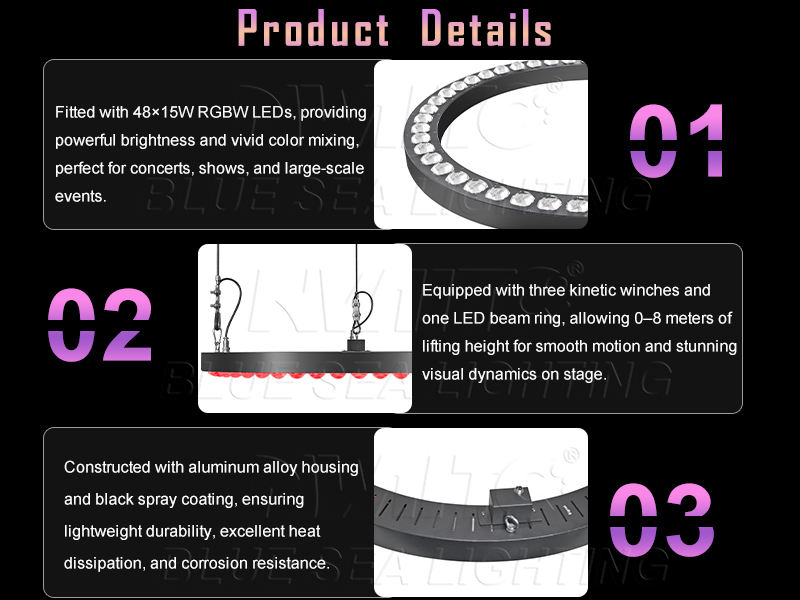 Nombre del producto:Anillo de luz LED RGBW Kinetic Beam de aluminio con elevación de color