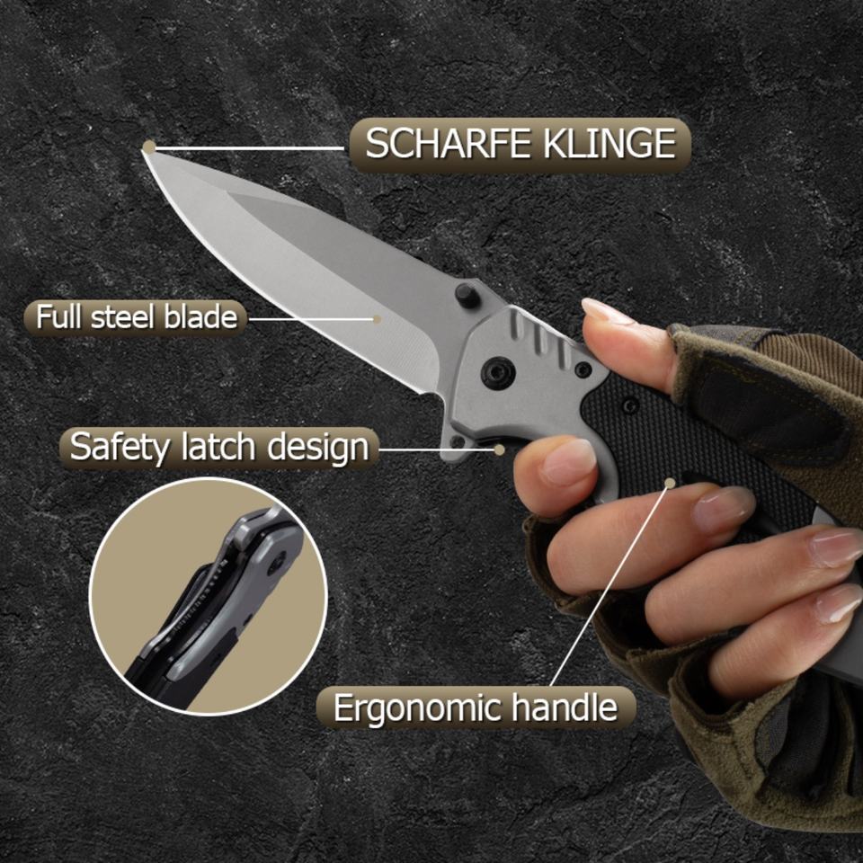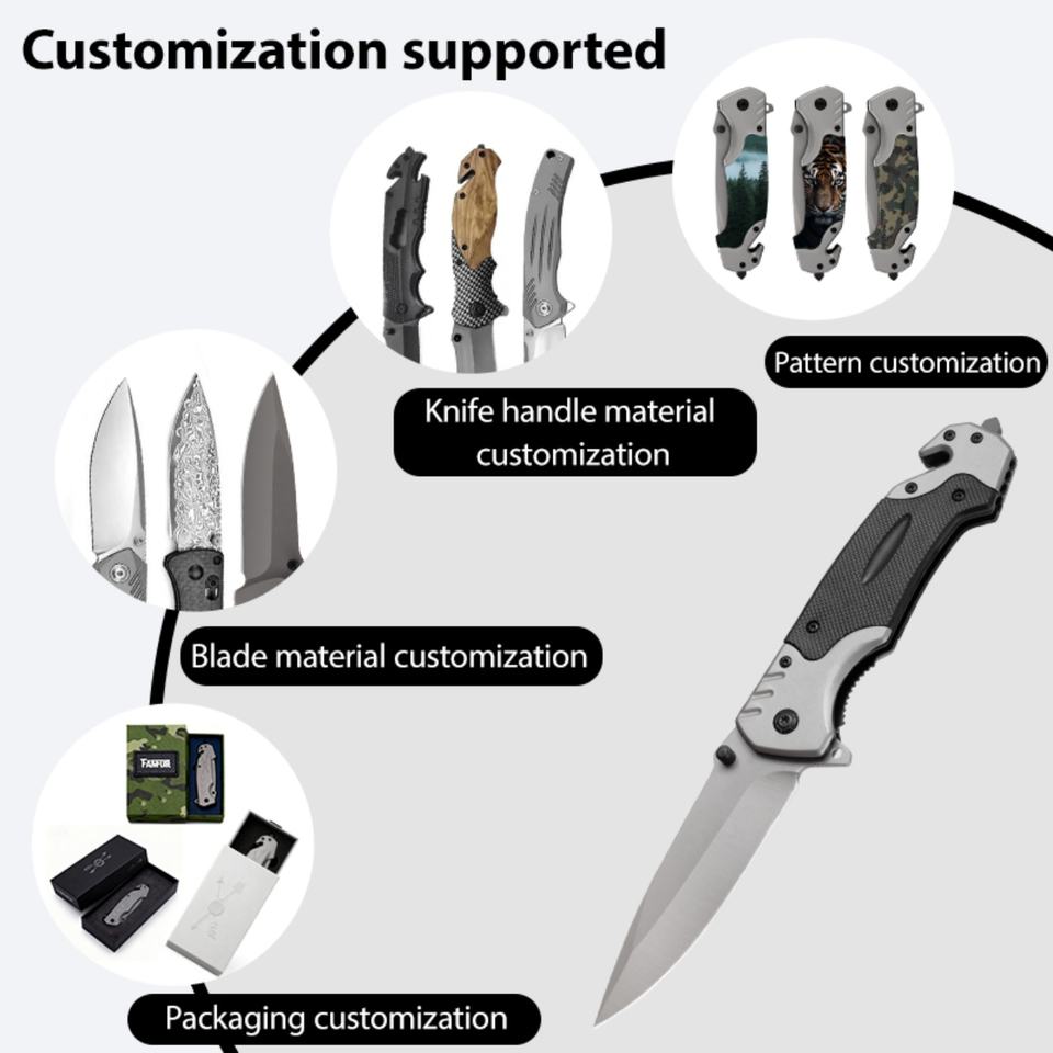 Cuchillo Plegable Multifuncional de Acero Inoxidable OEM Personalizable King, Hoja No Ajustable, 230 mm de Longitud Total, para Exteriores
