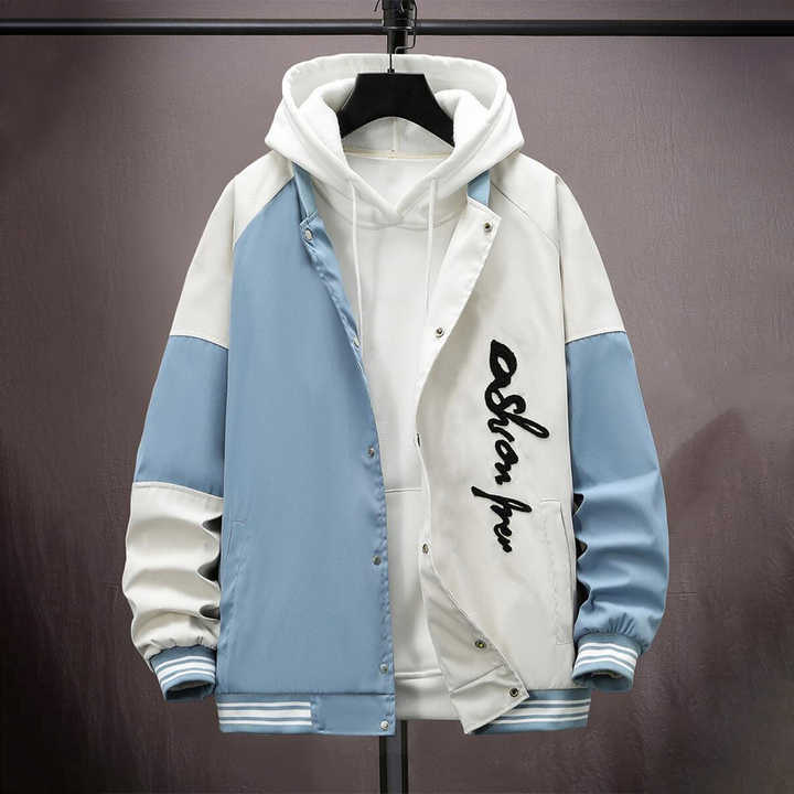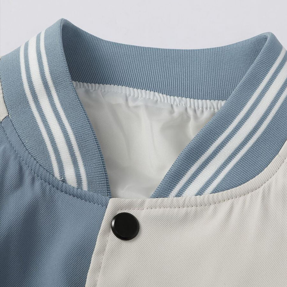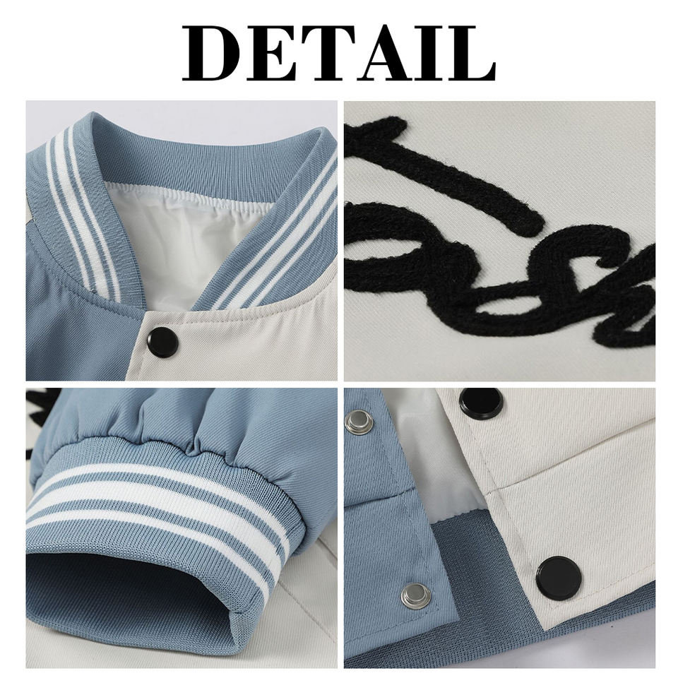 Chaqueta Varsity KingSen para Hombre, con Bloques de Color, Bordado, Hombros Caídos, Corte Holgado, Botones a Presión, Estilo Béisbol, Talla Grande