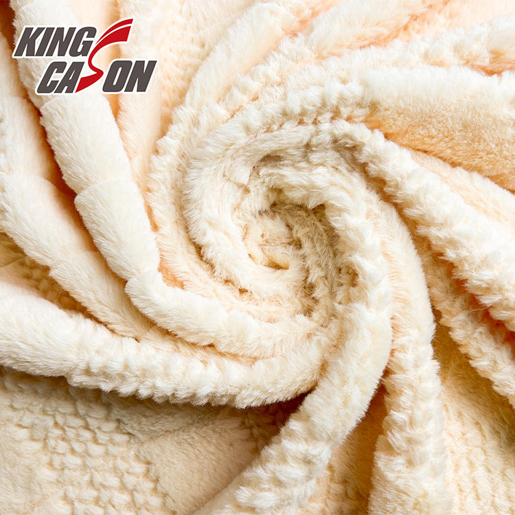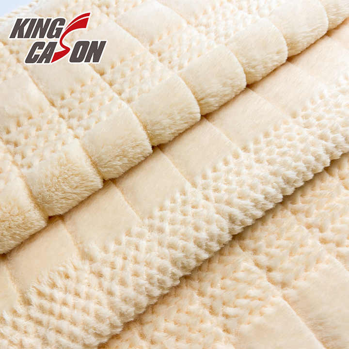 Tela de lana Kingcason Jacquard de piel de conejo, pelo largo cálido, cepillo de un lado, tela de punto, precio barato, felpa para juguetes, prendas