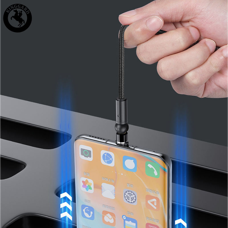 Cable de Carga Magnético Giratorio Kinggard 540 USB 2.0 con Diseño Trenzado de Nailon en Forma de L de 2.4A para Teléfono y Banco de Energía